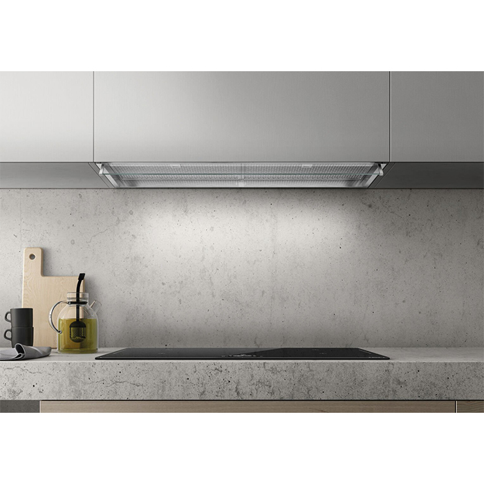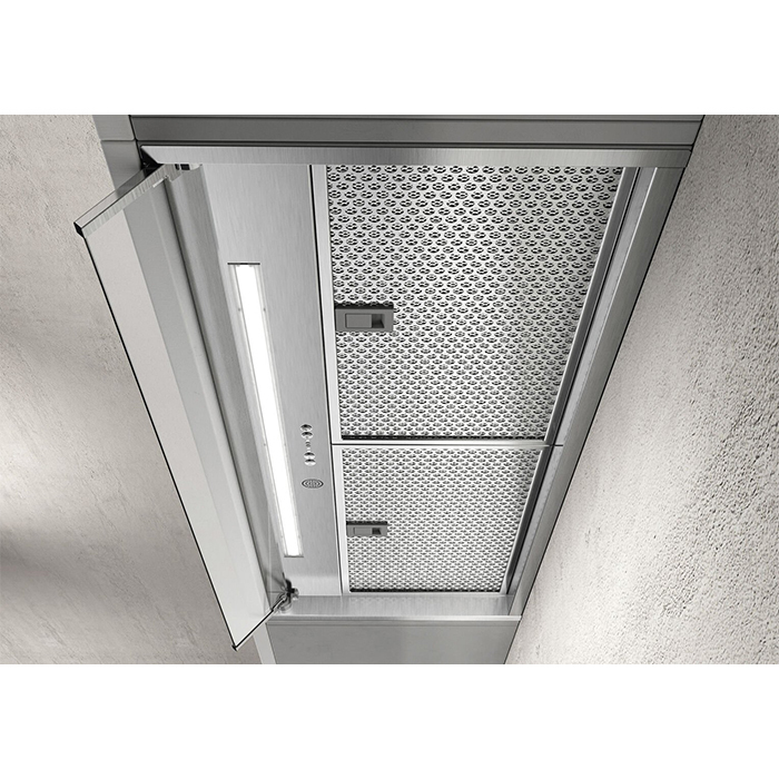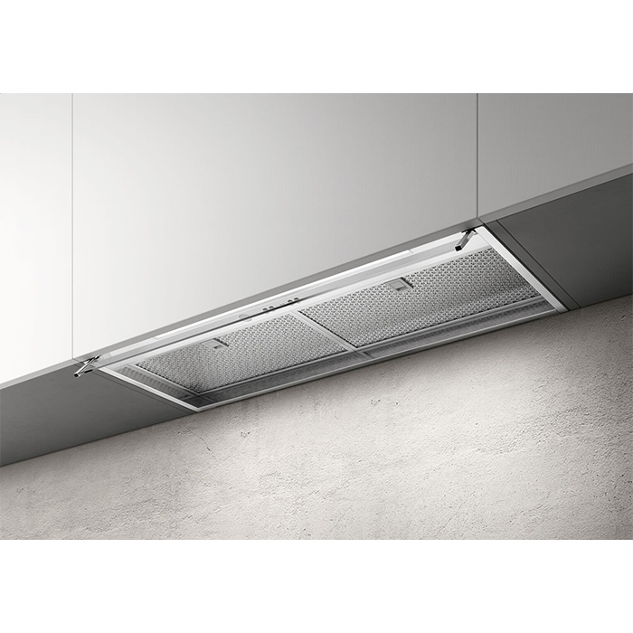 Ο απορροφητήρας της εταιρείας Elica, ενεργειακής κλάσης A, είναι εντοιχιζόμενος. Τοποθετείται σε ντουλάπια με τέτοιο τρόπο, ώστε να είναι ορατή μόνο η κάτω επιφάνειά του.