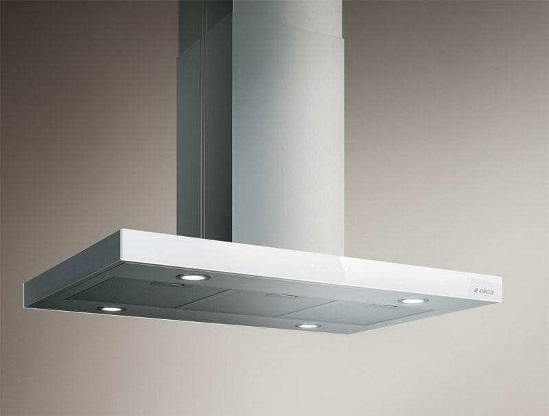 Ο απορροφητήρας της εταιρείας Elica τοποθετείται στον τοίχο. Είναι σχεδιασμένος έτσι ώστε να καλύπτει τον σωλήνα εξαγωγής αέρα και να μοιάζει με καμινάδα.
