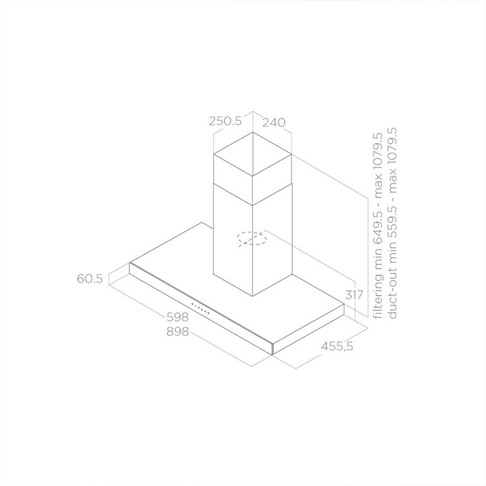Η μέγιστη απορροφητική ισχύς είναι 288 m³/h, η οποία μπορεί να καλύψει ικανοποιητικά χώρους έως και 10 τετραγωνικά μέτρα (με ύψος 2,85 μέτρα). Επιπλέον διαθέτει και λειτουργία αυξημένης έντασης στα 581 m³/h για σύντομο χρονικό διάστημα, ιδιαίτερα χρήσιμη για την αντιμετώπιση οσμών κατά το τηγάνισμα και το ψήσιμο στο grill.