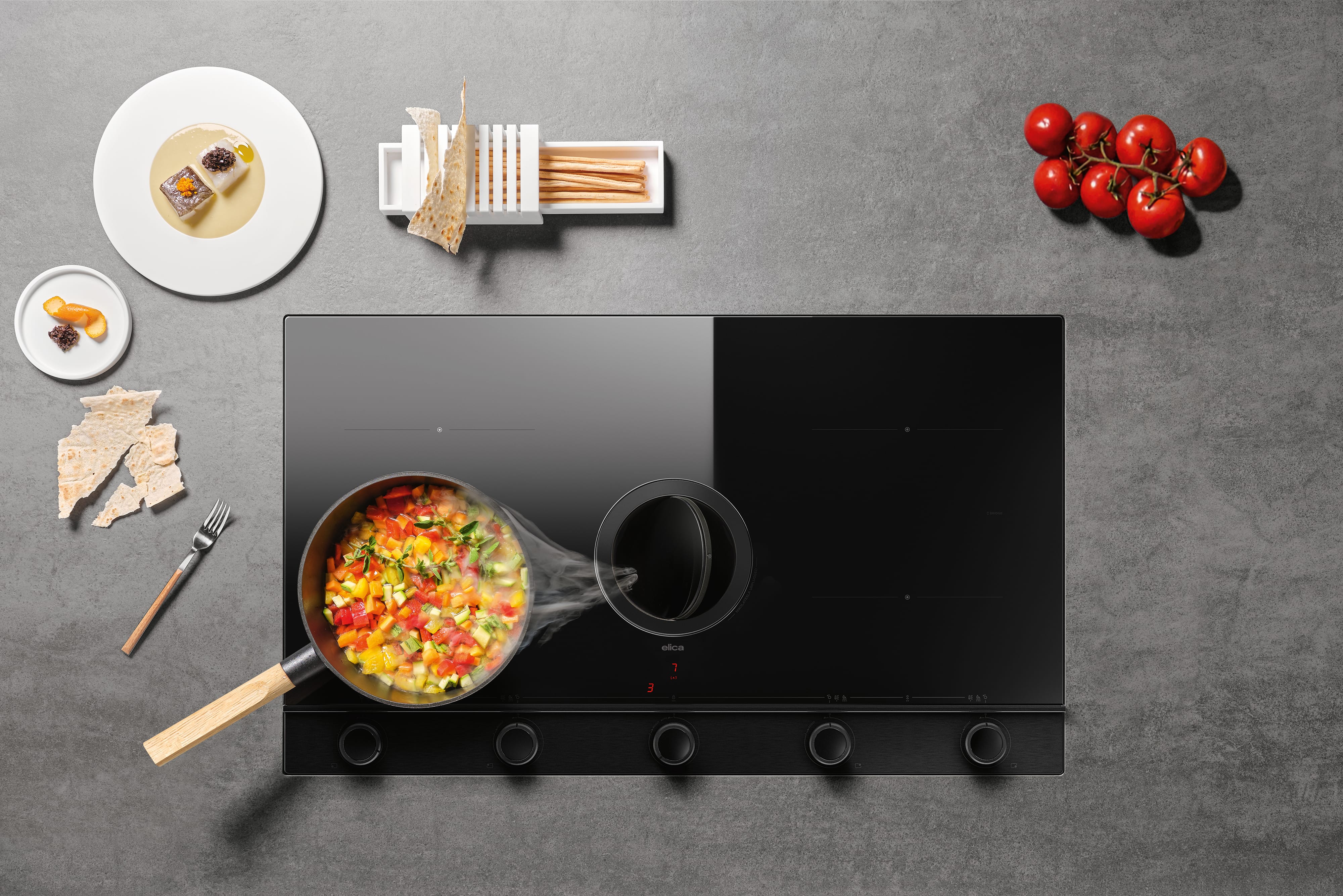 Έτοιμοι για παιχνίδι; Επιτέλους, μπορείτε να μαγειρέψετε σε μια εύχρηστη και εργονομική κουζίνα. Διακόπτες με εξαιρετική λαβή, αναλογική αφή και αίσθηση, προηγμένες λειτουργίες και εύχρηστα χειριστήρια διακρίνουν αυτήν την εστία εξαγωγής, όπου η περιοχή μαγειρέματος χωρίζεται από την περιοχή ελέγχου (προστατευμένη από ένα χώρισμα). Το κεντρικό πτερύγιο από γυαλί και μέταλλο κρύβει την περιοχή εξαγωγής, αναβαθμίζοντας τον γραμμικό σχεδιασμό του προϊόντος με έναν εκπληκτικό παράγοντα εντυπωσιασμού. Ο αέρας είναι πάντα καθαρός χάρη στο καινοτόμο φίλτρο πολλαπλών χρήσεων για λίπη, οσμές και υγρασία, σχεδιασμένο για να διατηρεί τη συντήρηση απλή. Οι κινητήρες τελευταίας γενιάς εξασφαλίζουν χαμηλά επίπεδα θορύβου και μειωμένη κατανάλωση ακόμη και στην υψηλότερη ρύθμιση ισχύος. Τα κορυφαία χαρακτηριστικά του σάς επιτρέπουν να λιώνετε βούτυρο ή σοκολάτα χωρίς συνεχές ανακάτεμα, να βελτιώνετε τα αργά μαγειρεμένα γεύματα και να αποτρέπετε το ξεχείλιμα του νερού κατά το μαγείρεμα σε υψηλές θερμοκρασίες. Επιπλέον, μπορείτε να γεφυρώσετε δύο ζώνες μαγειρέματος για να εξασφαλίσετε ομοιόμορφη κατανομή θερμότητας, ακόμα και όταν μαγειρεύετε με μεγάλες κατσαρόλες ή τηγάνια.