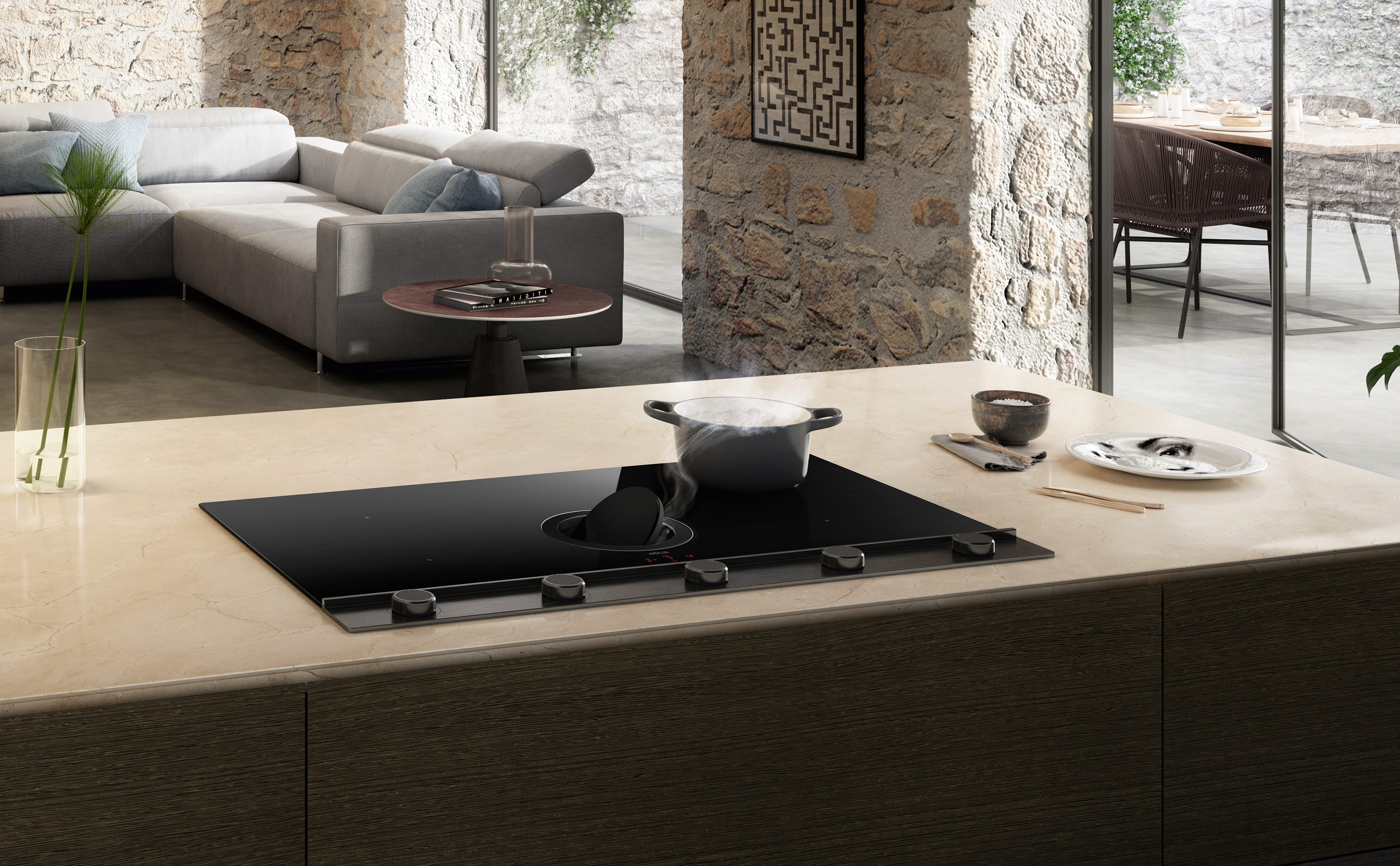 ✔ All-in-One Λύση (2-σε-1): Eπαγωγική εστία και απορροφητήρας σε μία συσκευή.