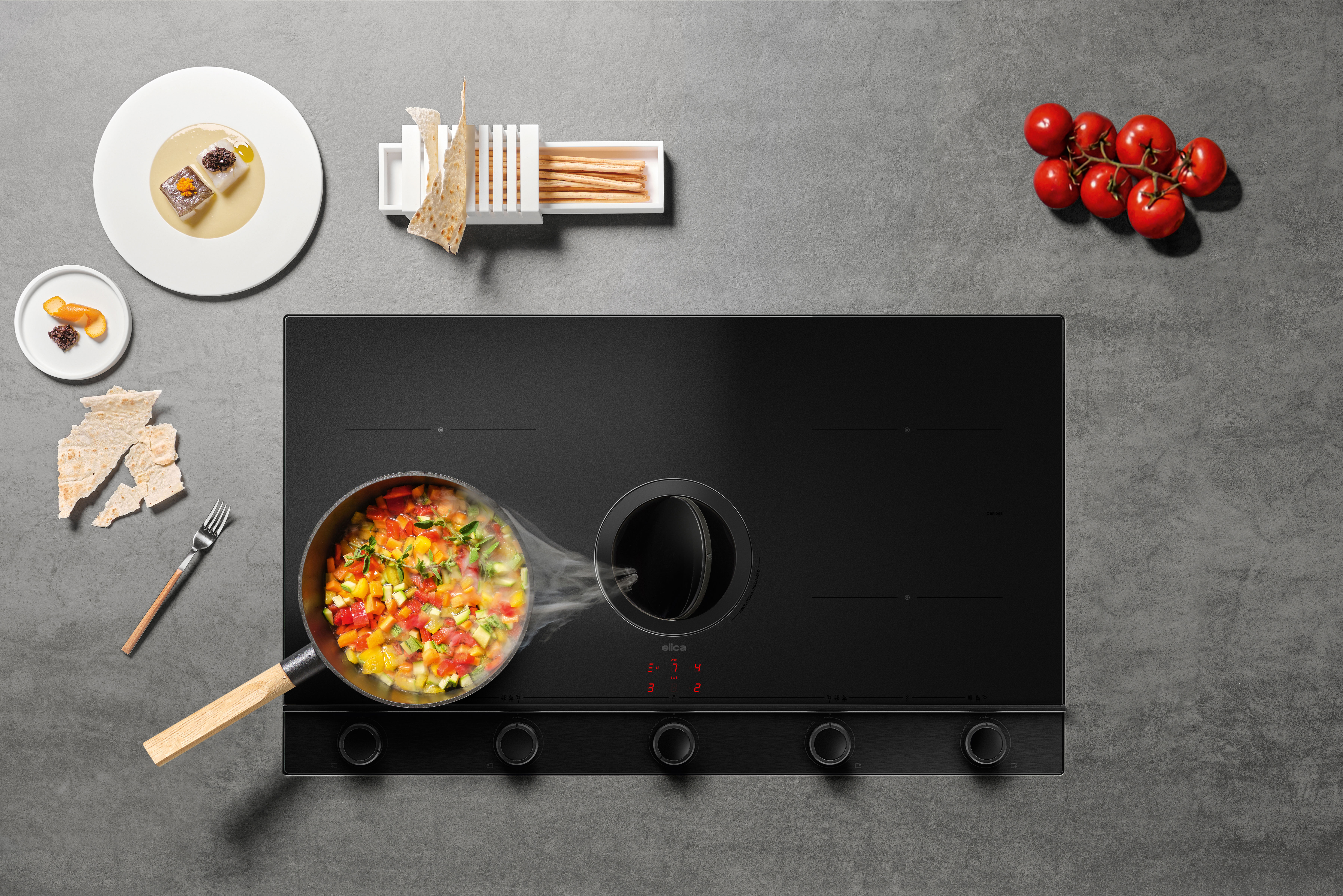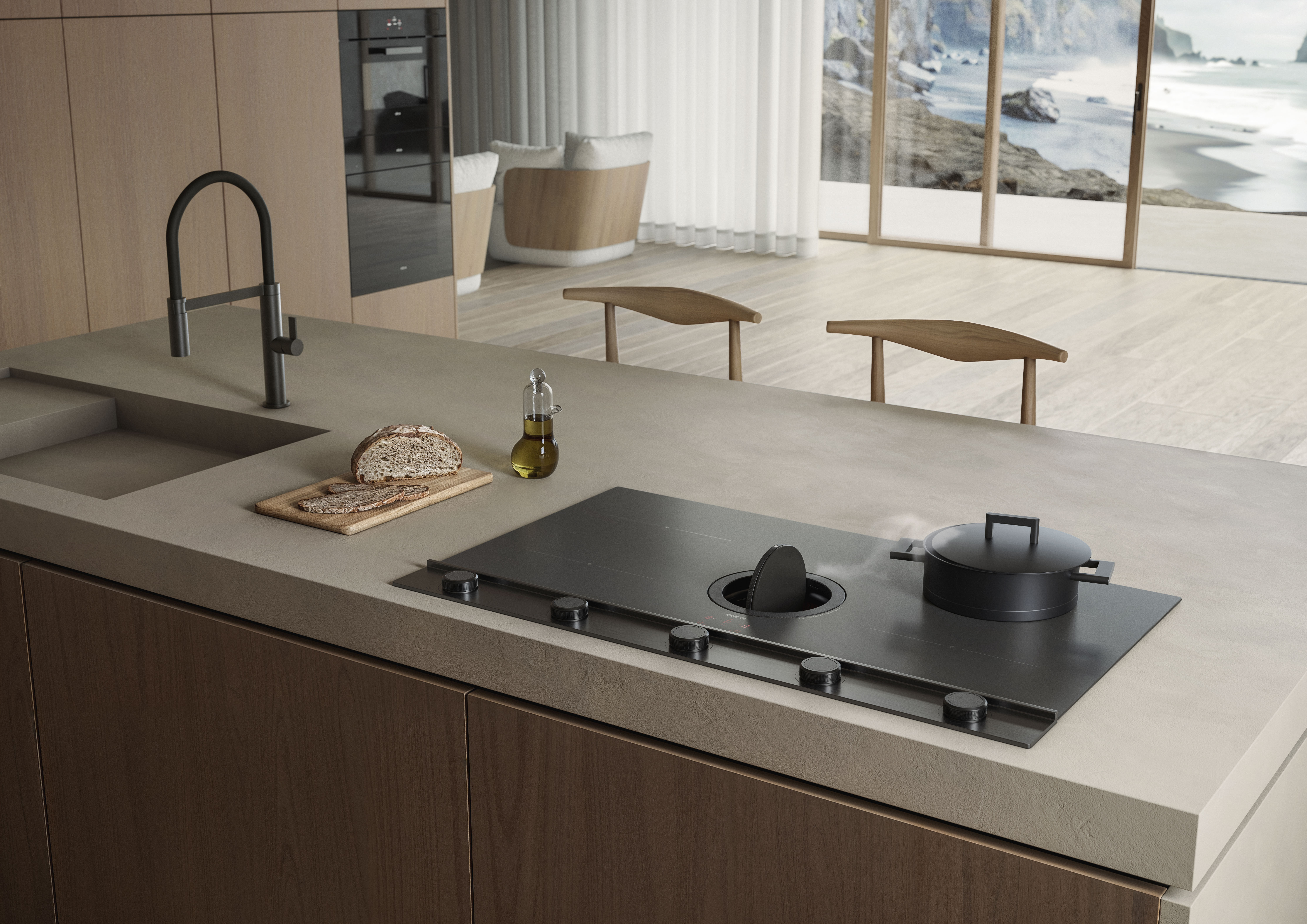 ✔ Ολοκληρωμένη λύση κουζίνας “2-σε-1”, συνδυάζοντας ισχυρή επαγωγική εστία με ενσωματωμένο απορροφητήρα.