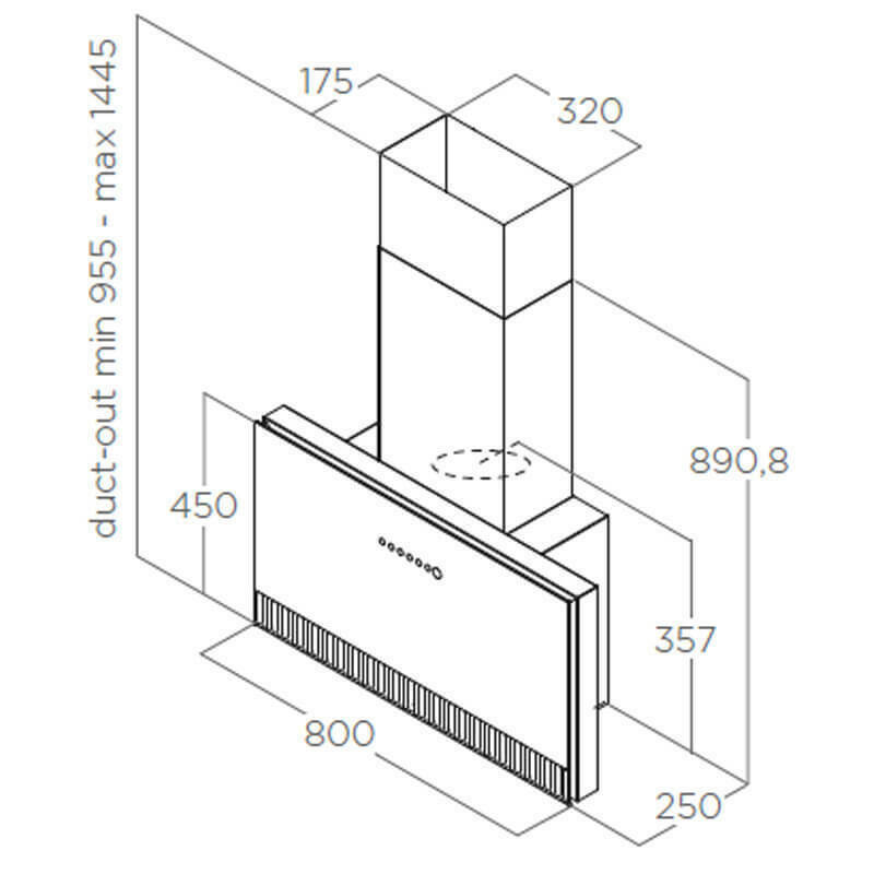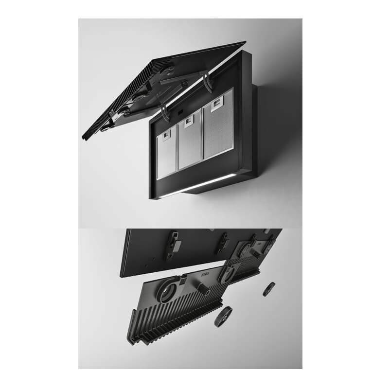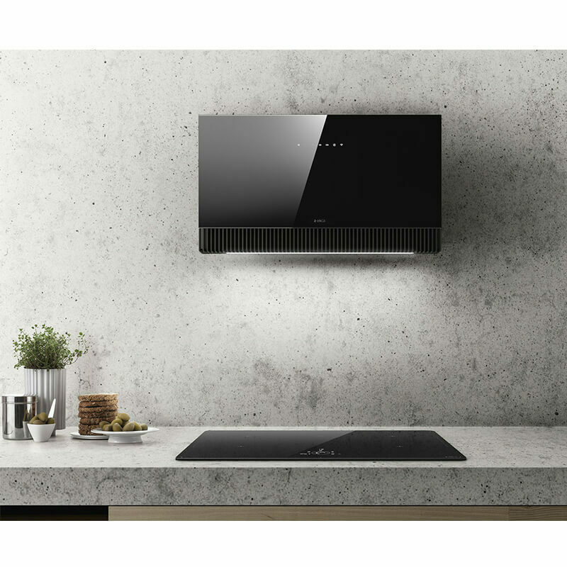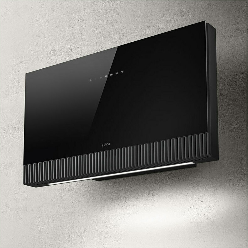 Ο απορροφητήρας της εταιρείας Elica, ενεργειακής κλάσης A, τοποθετείται στον τοίχο. Είναι σχεδιασμένος έτσι ώστε να καλύπτει τον σωλήνα εξαγωγής αέρα και να μοιάζει με καμινάδα.