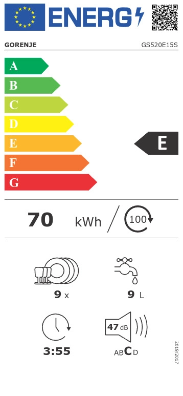 Gorenje GS520E15S Ελεύθερο Πλυντήριο Πιάτων για 9 Σερβίτσια, Π44,8xY84,5εκ, Ε, Inox