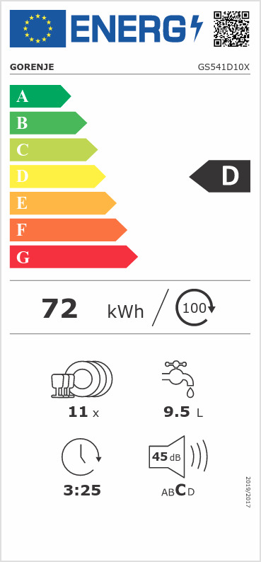 Gorenje GS541D10X Ελεύθερο Πλυντήριο Πιάτων για 11 Σερβίτσια Π44.8xY84.5εκ, D, Inox