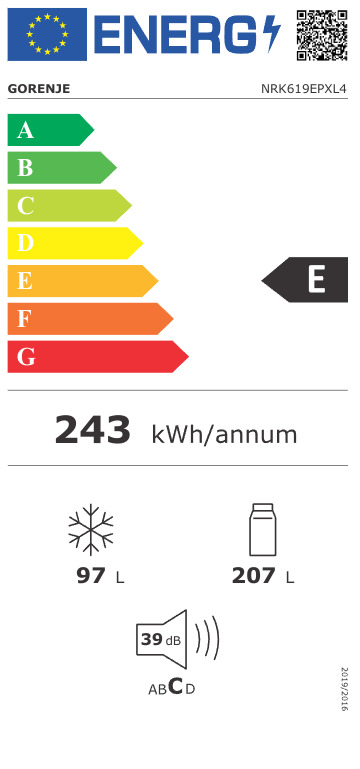Gorenje NRK619EPXL4 Ψυγειοκαταψύκτης 304lt, NoFrost, E (Υ186xΠ59,5xΒ59εκ) Inox