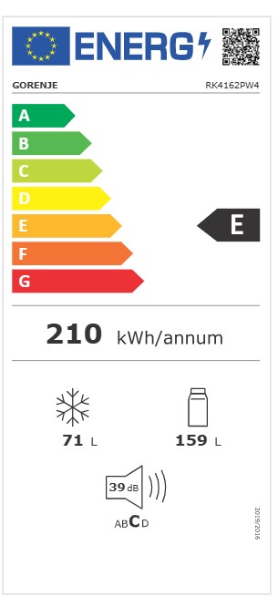Gorenje RK4162PW4 Ψυγειοκαταψύκτης 230lt, E (Υ161.3xΠ55xΒ55.7cm) Λευκός