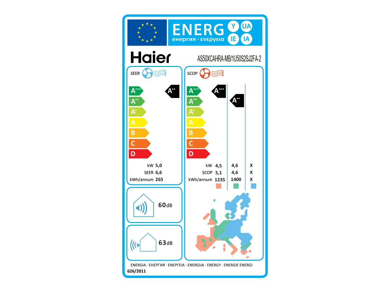 Βαθμός Απόδοσης Θέρμανσης (SCOP): 5,1 W/W