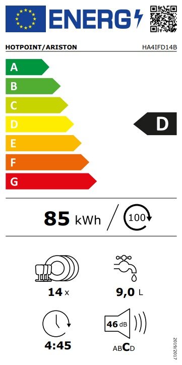 Το εντοιχιζόμενο πλυντήριο πιάτων Hotpoint-Ariston HA4IFD14B προσφέρει 14 σερβίτσια, 7 προγράμματα και ενεργειακή κλάση D , συνδυάζοντας οικονομία και απόδοση. Με κινητήρα inverter και επίπεδο θορύβου 46 dB, λειτουργεί αθόρυβα και μακράς διαρκείας, ενώ η κατανάλωση νερού μόλις 9 l/κύκλο (ECO) εξοικονομεί πόρους και λογαριασμούς. Η οθόνη και ο χρονοδιακόπτης καθυστέρησης έναρξης κάνουν την καθημερινή ζωή ευκολότερη, ενώ η λειτουργία 1/2 φορτίου βελτιστοποιεί το πλύσιμο με λιγότερα πιάτα.