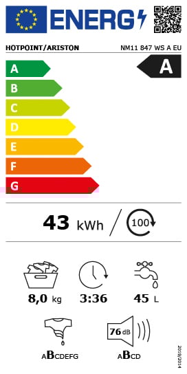 Hotpoint-Ariston NM11 847 WS A EU Πλυντήριο Ρούχων 8kg, 1400 Στροφών, με Ατμό, Α, Λευκό