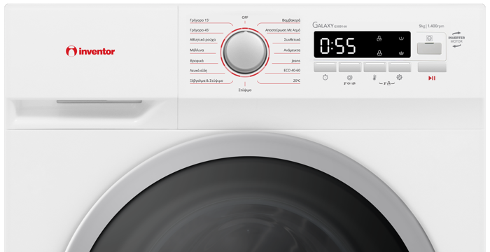Inventor Galaxy GX0914A Πλυντήριο Ρούχων 9kg, 1400 Στροφών, με Ατμό, Α, Λευκό (3 Ετη Εγγυηση)