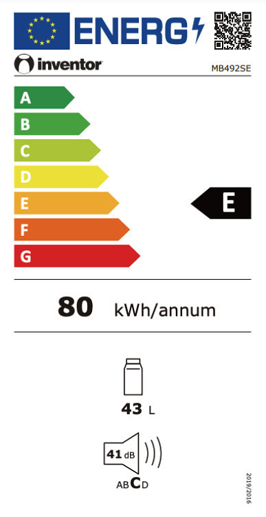 Inventor MB492SΕ Ψυγείο Mini Bar 43lt, E (Υ49,2xΠ47,2xΒ45εκ) Inox (3 Ετη Εγγυηση)