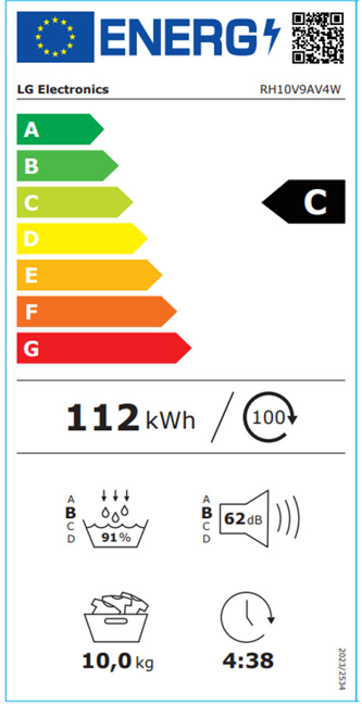 LG RH10V9AV4W Στεγνωτήριο Ρούχων 10kg, με Αντλία θερμότητας & Wifi, C, Λευκό