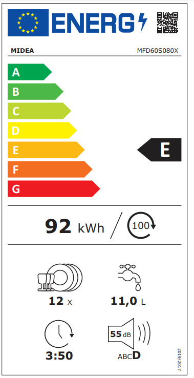 Midea MFD60S080X Ελεύθερο Πλυντήριο Πιάτων για 12 Σερβίτσια Π59.8xY84.5εκ, Ε, Inox (3ετή Εγγύηση)
