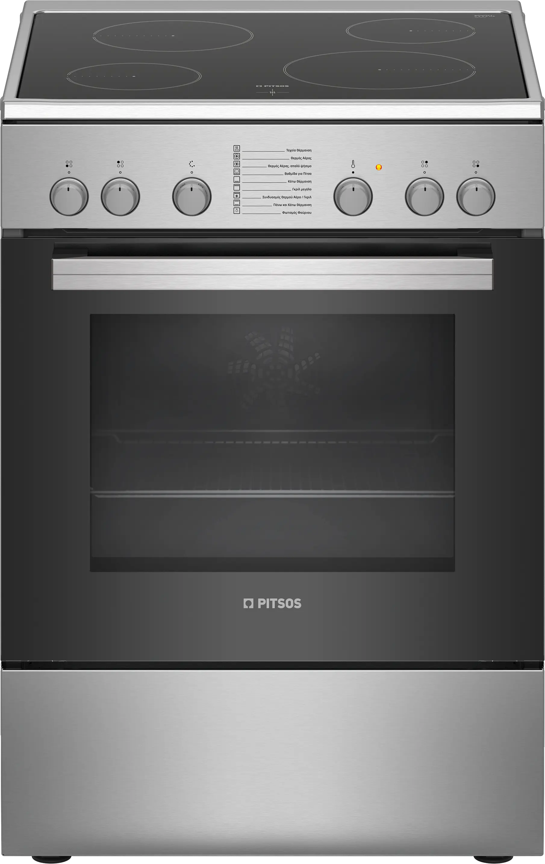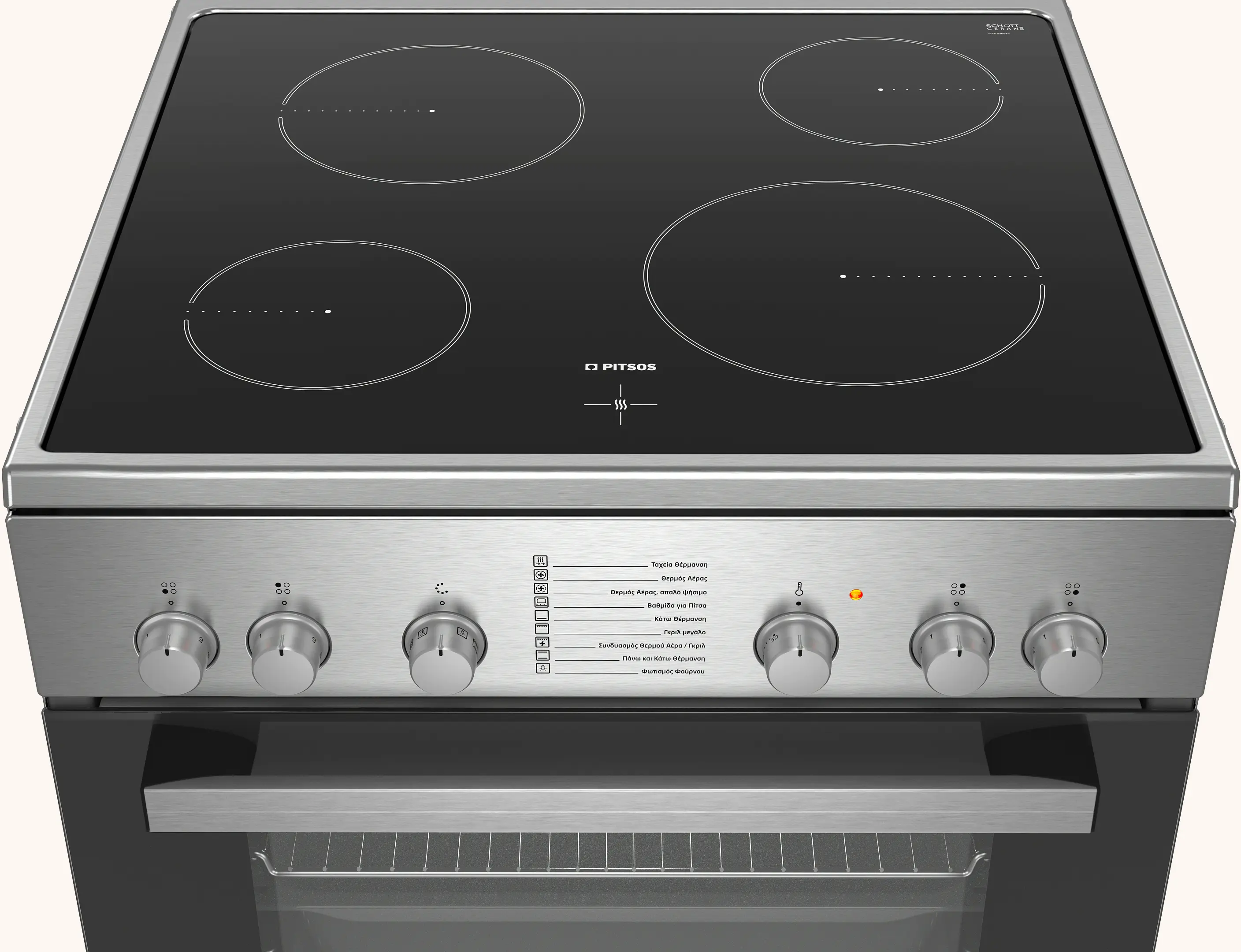 Pitsos PHC009150 Ελεύθερη Κουζίνα 66lt, με Κεραμικές Εστίες, Π60εκ, A, Inox
