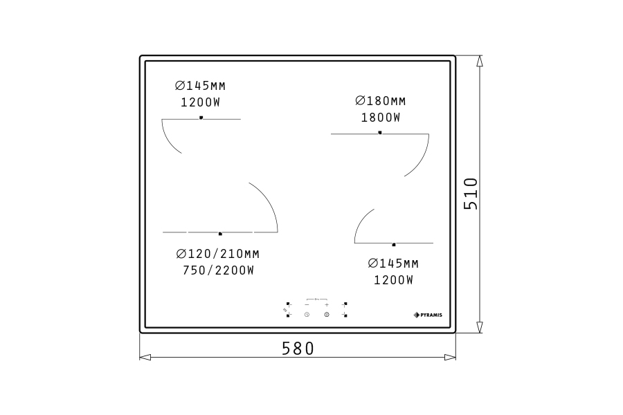Διαστάσεις & ισχύς ζωνών μαγειρέματος: