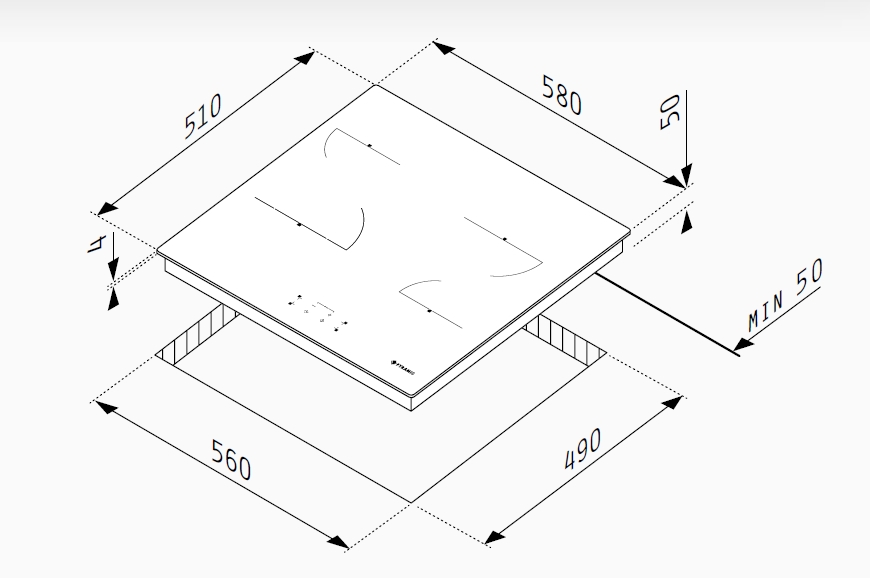 Διαστάσεις Εστίας (ΥxΠxΒ): 5 x 58 x 51 cm