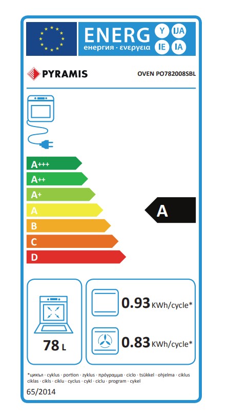 Pyramis PO78072008SBL & PHC61510IFB Σετ Φούρνου άνω Πάγκου 78lt, με Κεραμικές Εστίες & Inox Πλαίσιο, Π58xB51εκ, Α, Μαύρο