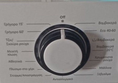 Γρήγορο 15', Σύντομο 40', Τζιν/Σκούρα ρούχα, Μεικτά, Αθλητικά, Πλύσιμο στο χέρι, Στύψιμο/Αποστράγγιση, Αντιαλλεργικό, Βαμβακερά, Eco 40-60, Βαμβακερά 20, Χρωματιστά, Μάλλινα, Ξέβγαλμα