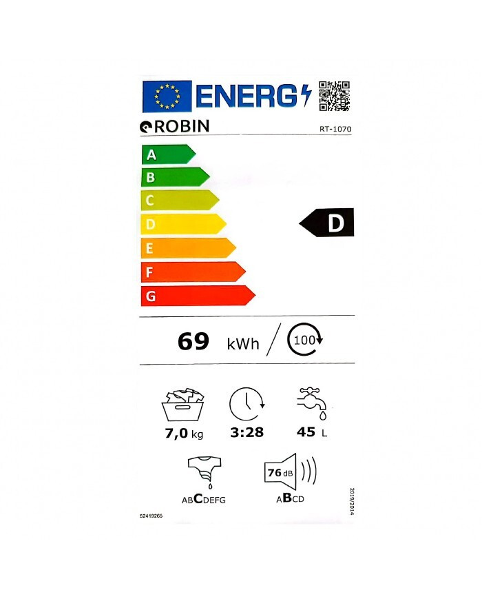 Robin RT-1070 Πλυντήριο Ρούχων 7kg, 1000 Στροφών, D, Λευκό