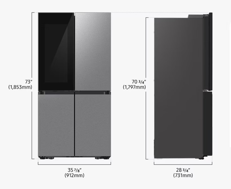Samsung RF65DB970E22EO Bespoke Εντοιχιζόμενο Ψυγείο Ντουλάπα 645lt, ΝοFrost, με Wifi, E (Υ185,3xΠ91,2xΒ73,1εκ) Μαύρο