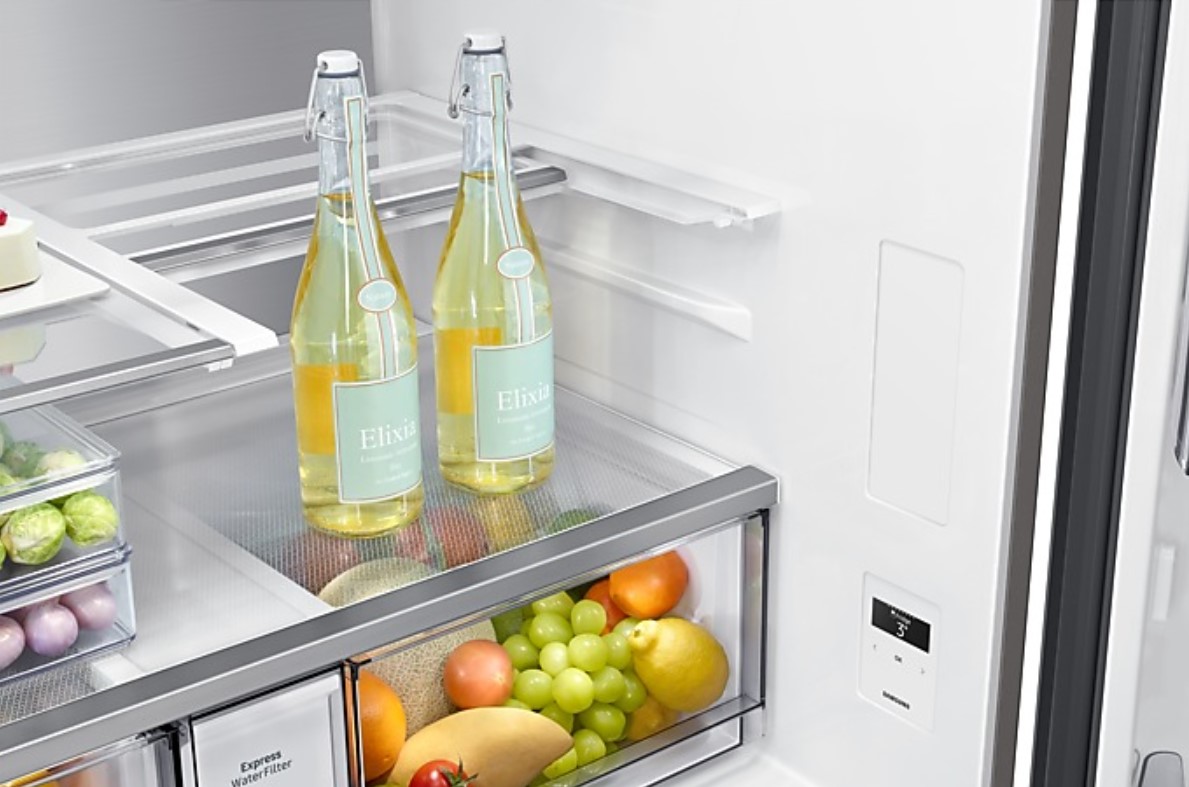 Το Beverage Zone παρέχει δύο ευέλικτες λειτουργίες, έτσι ώστε τα ποτά να είναι όμορφα παγωμένα και τα τρόφιμα, όπως τα επιδόρπια και το βούτυρο, να παραμένουν φρέσκα χωρίς να χάνουν την υφή τους. Μπορείτε επίσης να δείτε εύκολα το εσωτερικό του ψυγείου χωρίς να το ανοίξετε, χάρη στη διάφανη πόρτα See-Thru. Επιπλέον, ένα εσωτερικό φως ανάβει όταν πλησιάζετε, ενώ η δομή 3 επιπέδων της πόρτας See-Thru εμποδίζει τη διαφυγή ψυχρού αέρα και σταματά τη δημιουργία συμπύκνωσης.