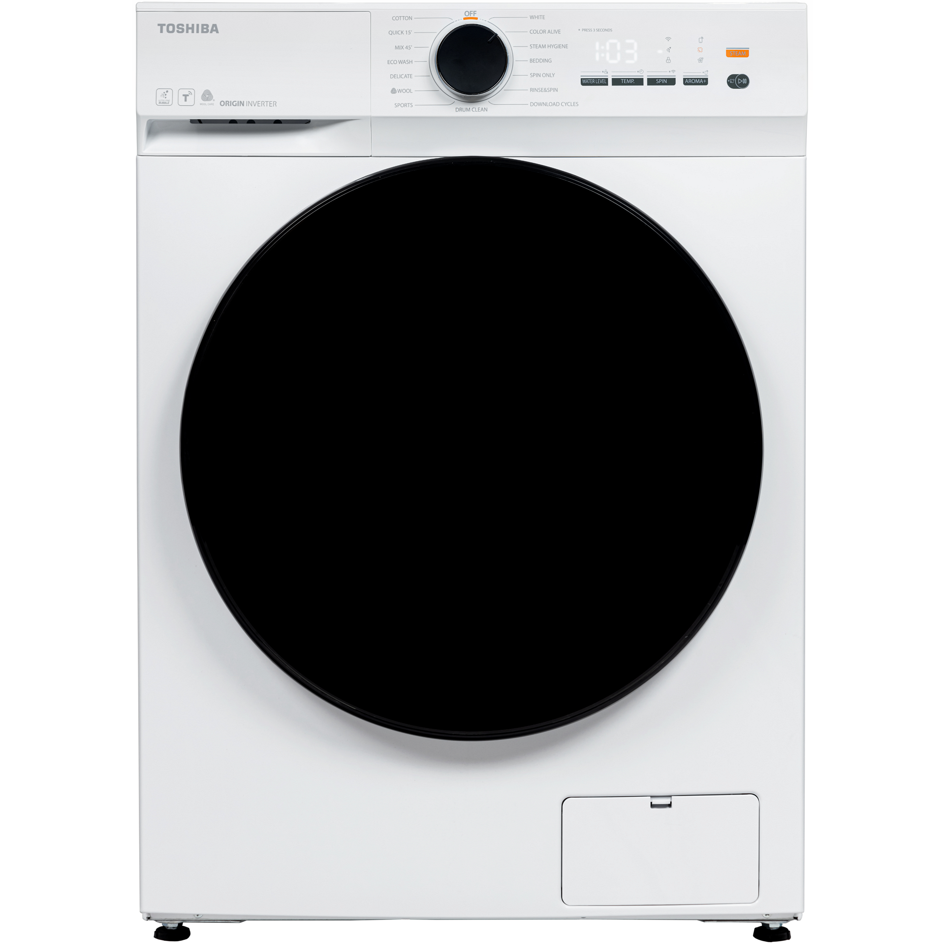 Toshiba TW-T21BU90UWBK (WW) Πλυντήριο Ρούχων 8kg, 1400 Στροφών, με Ατμό, ΑΙ & Wifi, Α, Λευκό