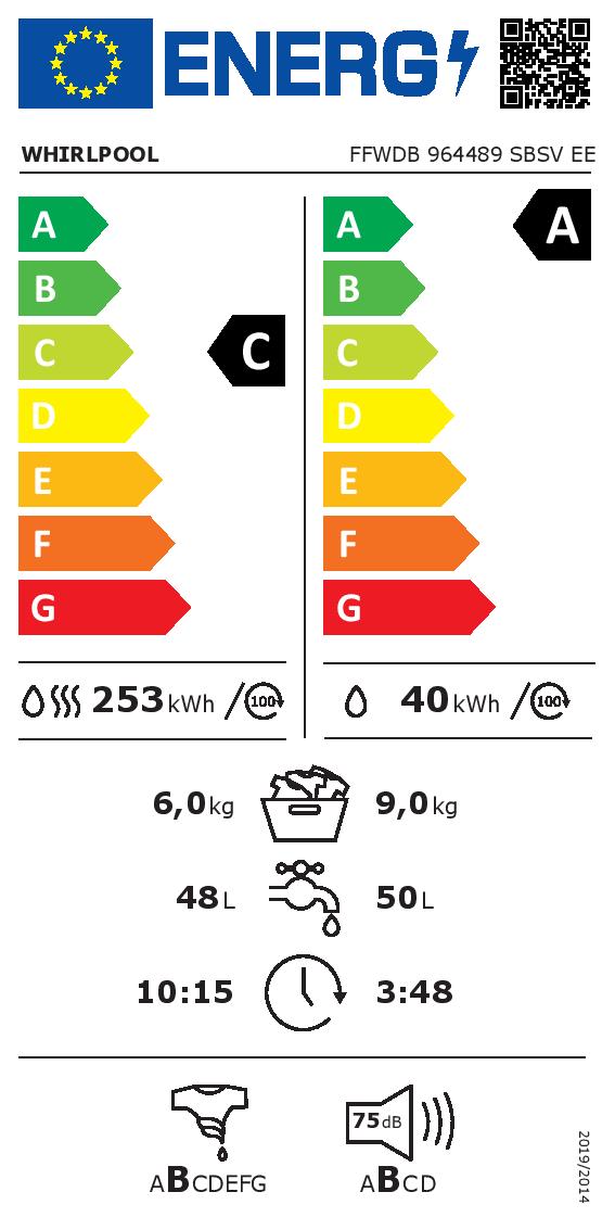 Κατανάλωση Ενέργειας (Στέγνωμα): 253 kWh/100 κύκλους