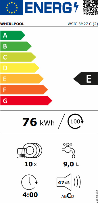 Whirlpool WSIC 3M27 C Πλήρως Εντοιχιζόμενο Πλυντήριο Πιάτων για 10 Σερβίτσια, Π45xY82εκ, Ε